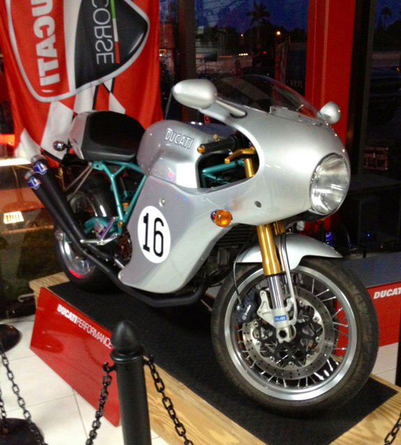 On April 27th, I attended the Atlantic Ducati of Pompano’s unveiling and welcome party for the 2012 Ducati Paginale. There was a festive atmosphere was bolstered by a live DJ, a lineup of Ferrari and Maserati’s finest and scantily clad women everywhere.