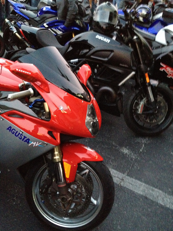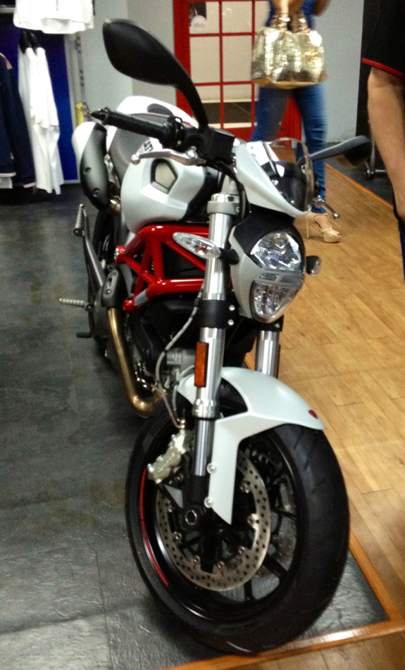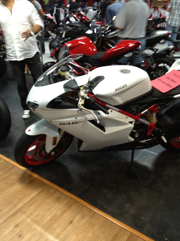 We had beer, wine, pizza and pasta to round out the Italian experience. There was even complimentary scotch tasting provided by Macallan with 12, 15 and 20 year scotch–high brow indeed. Inside the showroom, Atlantic Ducati was more than helpful and encouraged visitors to touch, sit and experience the full stable of Italian machines for sale.