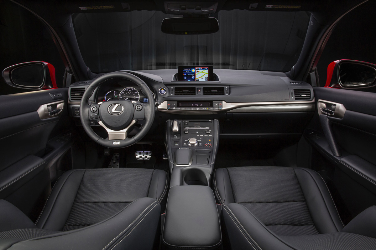 The 2014 CT200h has a great look. The word “sleek” is easily used here. In the F-Sport package, as we had it, cool accents like a black glass-like roof, auto-leveling LED headlamps, F-Sport specific wheels, and a lot of other accents bring the already good-looking CT200h to the next level.