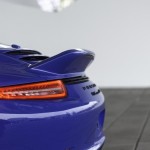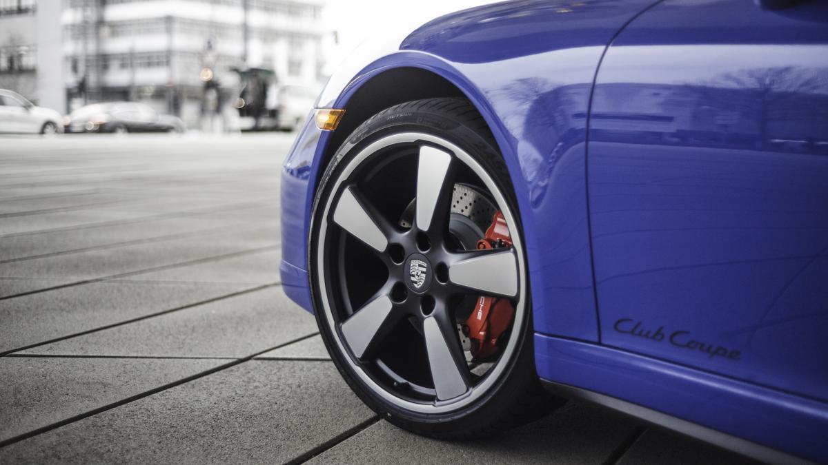 The GTS Club Coupe features the 44 mm wider body of the 911 Carrera 4 models with a rear wheel drive platform. SportDesign side mirrors, black framed Bi-Xenon™ headlights with Porsche’s Dynamic Light System, and taillights tinted in black are standard, while the doors are marked with black “Club Coupe” model designations, clearly distinguishing this unique 911. Painted in the newly created “Club Blau” color, the limited-edition model is also characterized by the SportDesign package, which is fitted as standard. A more pronounced front fascia as well as a “ducktail” rear spoiler gives the special car a striking, yet classic, appearance. 20-inch Sport Classic wheels painted in semi-gloss black with polished wheel centers and rim flanges are also standard on the GTS Club Coupe.