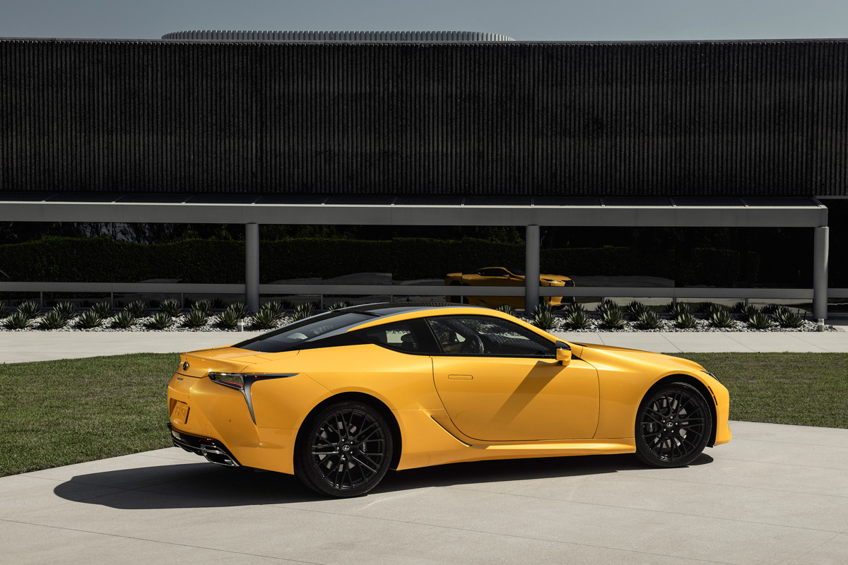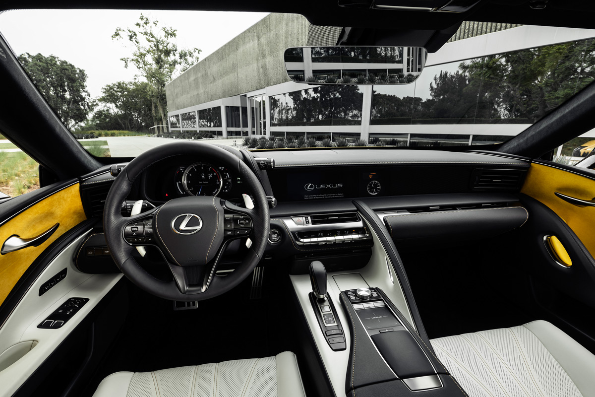 The interior of the LC Inspiration Series also gets several unique design elements, including bespoke yellow door inserts (made of Alcantara) that connect the exterior to the cabin, along with touring seats that feature semi-aniline leather with yellow stitching. That same stitching is also used on the instrument panel, console and glovebox, giving the entire cabin a very custom look that is sure to please.