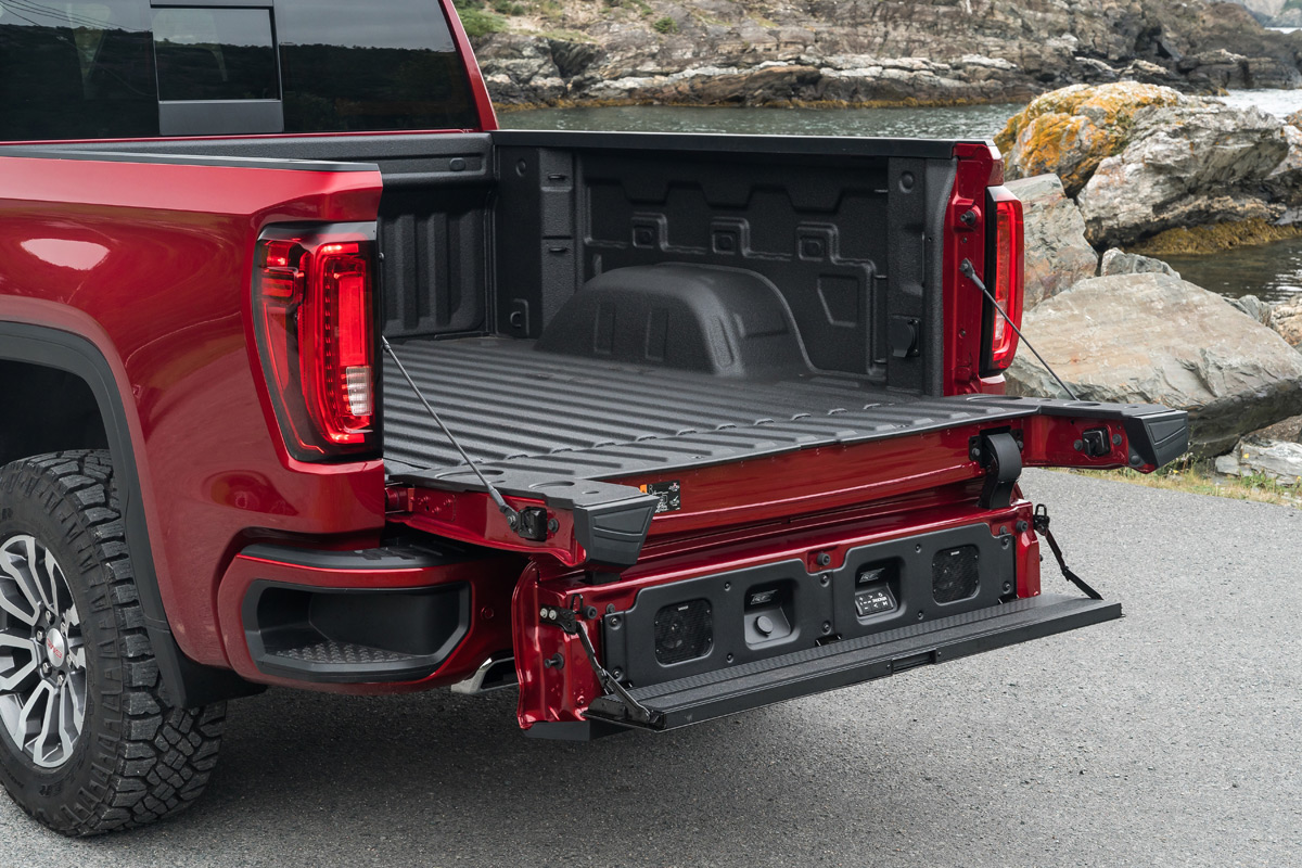 In the plethora of Sierra models to choose from, the AT4 sits just underneath the Denali and has serious off-road upgrades as part of the package. The Sierra AT4 has a 2″ suspension lift, four-wheel drive as standard, a two-speed transfer case for more muscle when it’s needed, monotube shocks, beefier all-terrain tires, a terrain-select traction control system, and more. It’s the new off-road package GMC has been touting on several of its SUVs, but it’s definitely most prominent (and capable) on the Sierra.