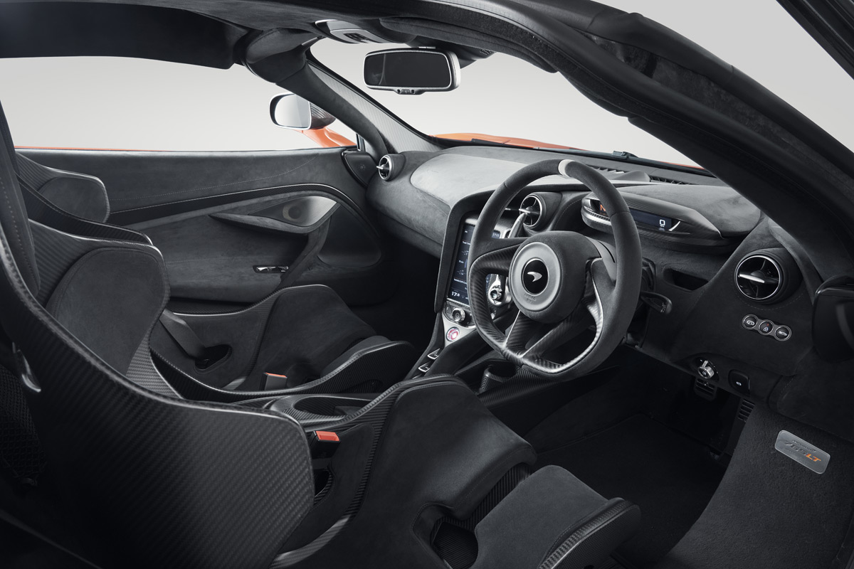 Suspension upgrades include unique LT-spec springs and damper hardware, new software for the linked hydraulic active suspension, and a lower front ride height. The front track has also been widened; this and the increased roll stiffness will deliver improved grip and greater precision and stability through corners, according to McLaren.
