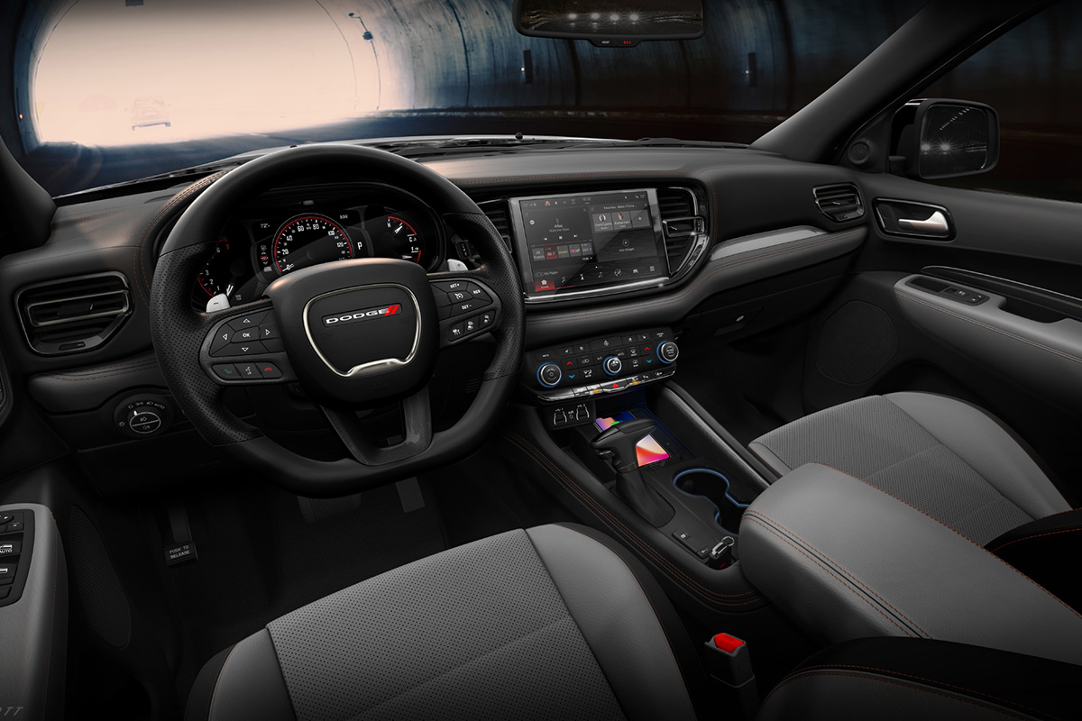 The Durango R/T is the only one of the Durangos to use the nearly iconic 5.7-liter Hemi that appears in so many of Dodge, Ram Truck, and Jeep vehicles. In the Durango, the 5.7 engine puts out 360 horsepower and 390 pound-feet of torque. This goes to an eight-speed automatic transmission to the rear wheels or, if opted for, all four wheels. The Durango R/T also has 20-inch wheels, leather seating, captain’s chairs in the second row, heated side mirrors and front seating, a 9-speaker audio system, a 10.1-inch touchscreen for infotainment, navigation, and a host of other goodies. Options can add even more.
