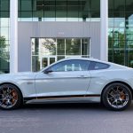 To improve ride and handling, the Mach 1 features the latest MagneRide calibration, a stiffer steering I-shaft, new EPAS calibration, stiffer sway bars and front springs, a brake booster from the Mustang GT PP2, 9.5-inch/10-inch split fitment wheels with Michelin PS4 tires, a rear subframe with stiffer bushings and a rear toe-link from the Shelby GT500.