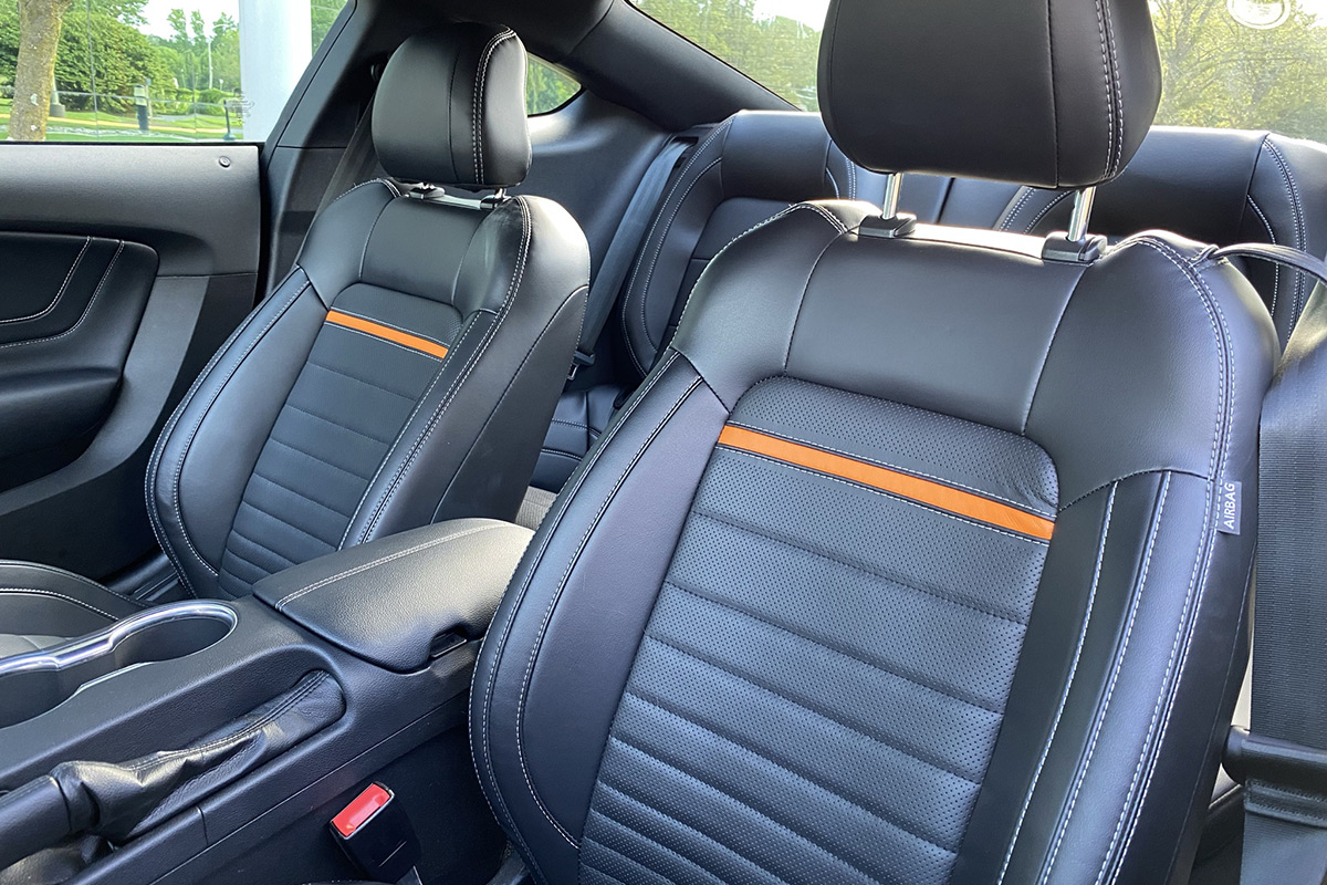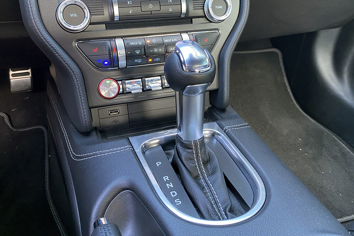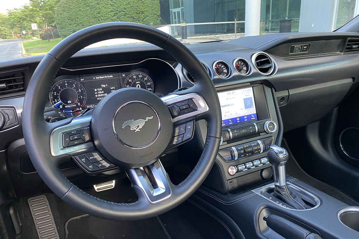 Unlike the Bullitt though, the Mach 1 uses the Tremec TR-3160 six-speed manual transmission from the Shelby GT350, which is an absolute joy to row and features automatic rev-matching downshifts and a slick no-lift-shift feature. That said, our tester was equipped with a 10-speed automatic, which was surprisingly good in its own right, with an upgraded torque converter and unique calibration that enables optimizing torque capability, shift character and overall enhanced performance.