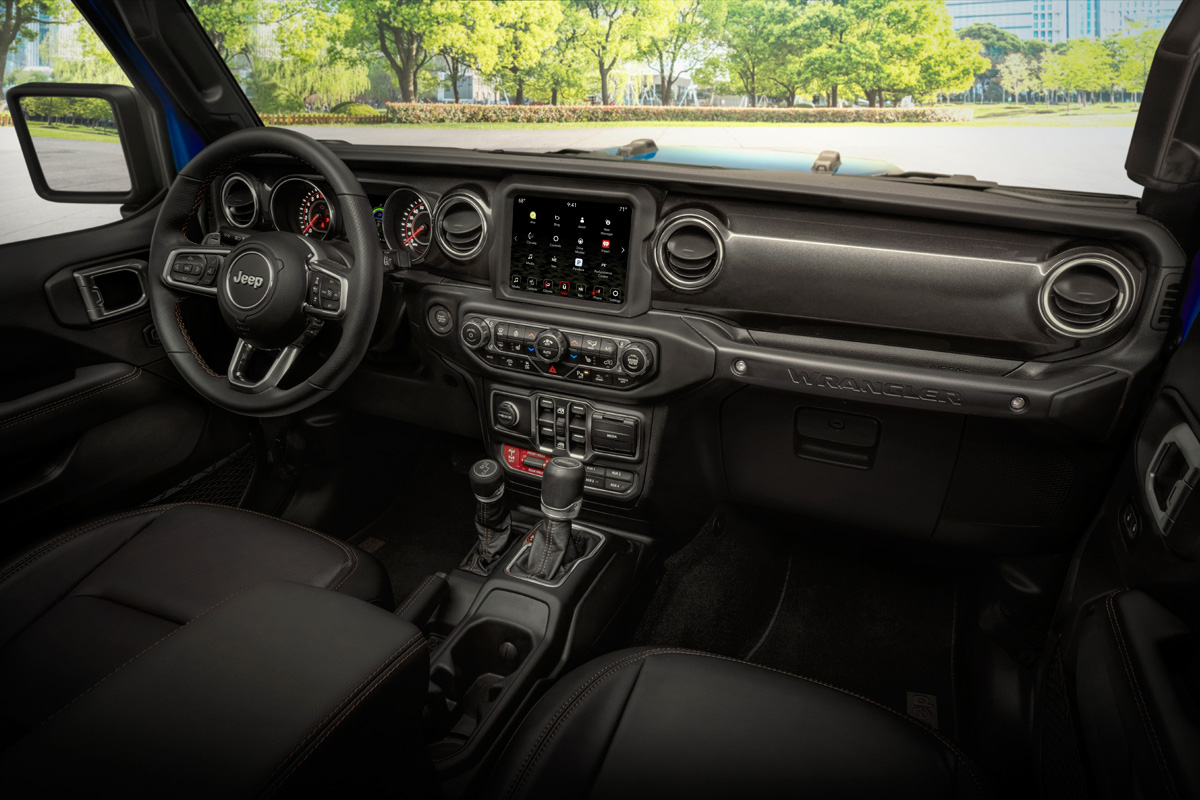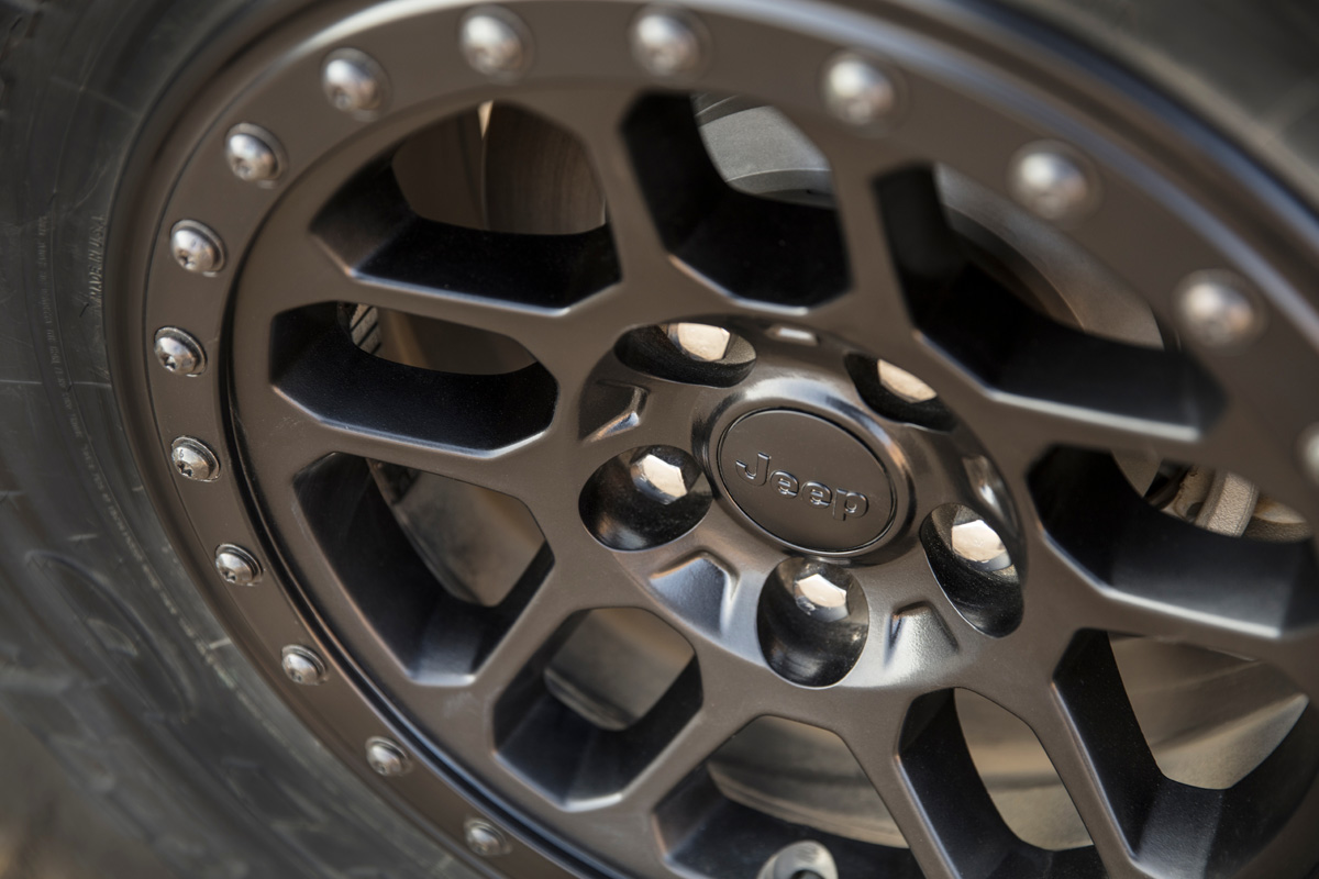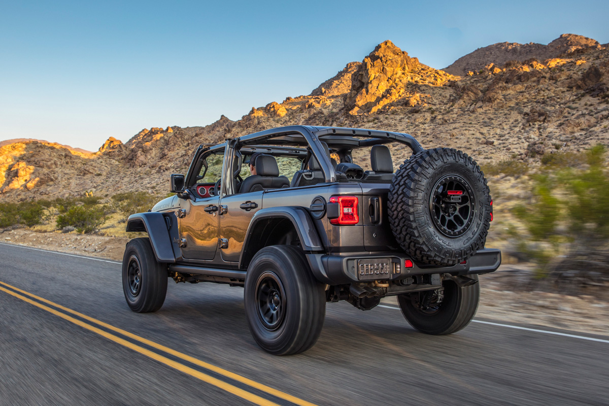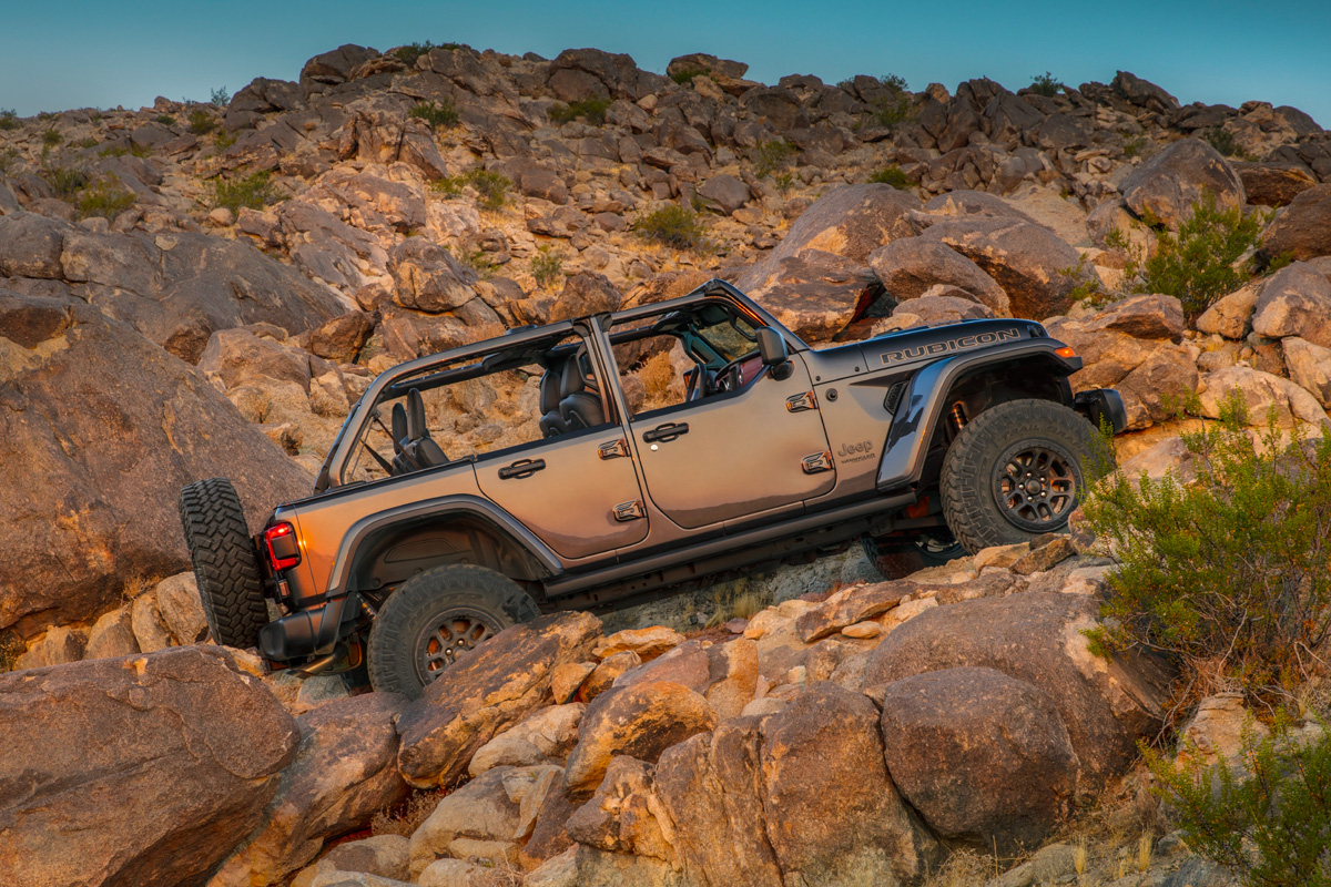 Away from the pavement, the Trail Rated Wrangler Rubicon 392’s potent powertrain meshes with heavy-duty wide track Dana 44 front and rear axles with thicker axle tubes and Tru-Lok electronic locking differentials, 3.73 final drive ratio, transmission torque converter lockup control, and standard 33-inch tires on 17-inch beadlock-capable wheels.