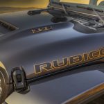 Visually, the Jeep Wrangler Rubicon 392 stands apart with bronze accents throughout (bronze traces “Rubicon” on the hood, covers the front and rear tow hooks, along with outlining the Jeep badge, the Trail Rated badge, and the FOX Shocks decal). There’s also “392” badges on the 40mm raised hood, and distinctive quad exhaust outlets in the rear.