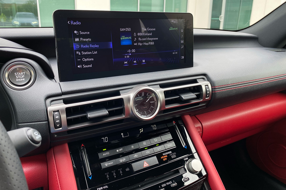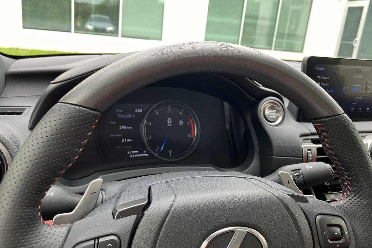 Our car’s Circuit Red interior and ash wood-trimmed heated steering wheel definitely gave the interior a sporty vibe, and the 10-way F SPORT seats (heated/ventilated) were nicely bolstered, keeping me in place during spirited driving while still offering great comfort. The 17-speaker Mark Levinson audio system sounds amazing as always, and I was rocking out to my favorite tunes all week. All in all, a nice place to spend your daily commute.
