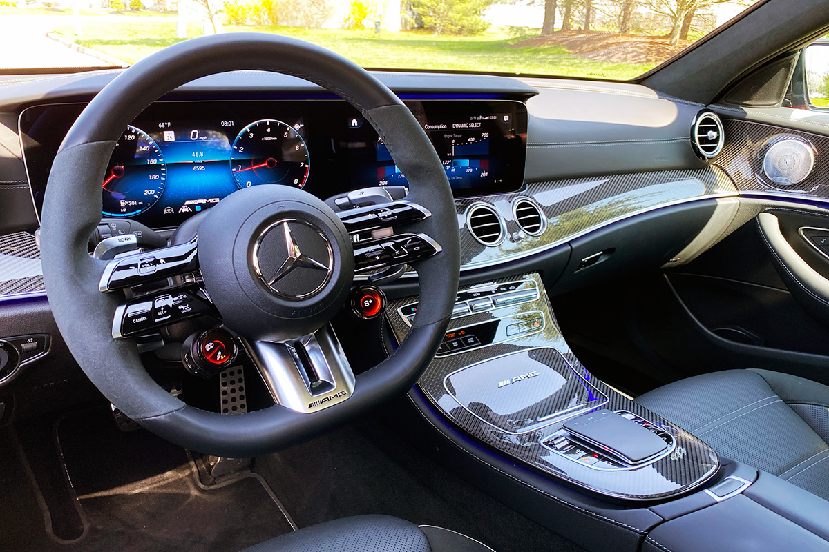 When you’re behind the wheel of the 2021 Mercedes-AMG E63 S Wagon, it’s easy to forget that you’re driving a wagon unless you look in the rear view mirror. It drives like a proper super car, low to the ground, with breakneck acceleration, lightning-quick shifts, carbon ceramic brakes that stop on a dime, handling like you wouldn’t believe, and a rhapsodic exhaust note.
