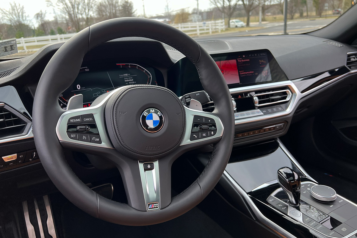 Despite “only” having 255 horsepower, this little guy really scoots, with a 0-60 mph time of 5.5 seconds, and oodles of torque (no boost lag here) for effortless passing and acceleration. The turbocharged four-cylinder engine in the 230i jumps in pretty early in the RPM range, kicking in somewhere in the 2,000 rpm range. After that, it keeps pulling through to the upper end. Need to reign it in? Those M Sport Brakes do an amazing job of slowing you down in a hurry.