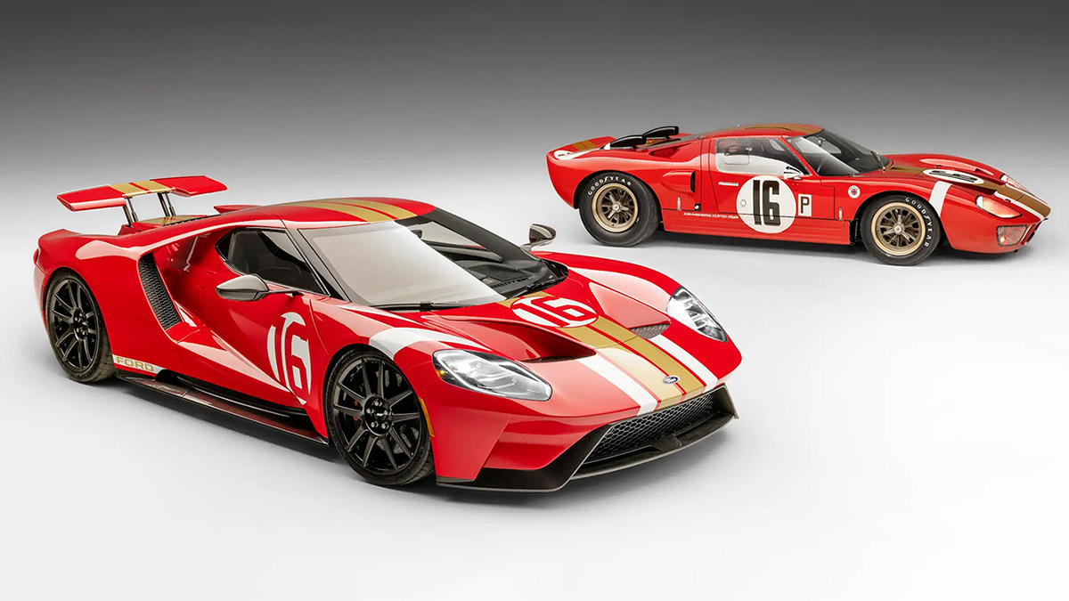 - 2021 Ford GT Heritage Edition honoring No. 98 Ford GT Mk II co-driven by Ken Miles and Lloyd Ruby to Ford’s 1-2-3-5 domination at Daytona in 1966, kicking off a magical season for the Ford GT40 Mk II