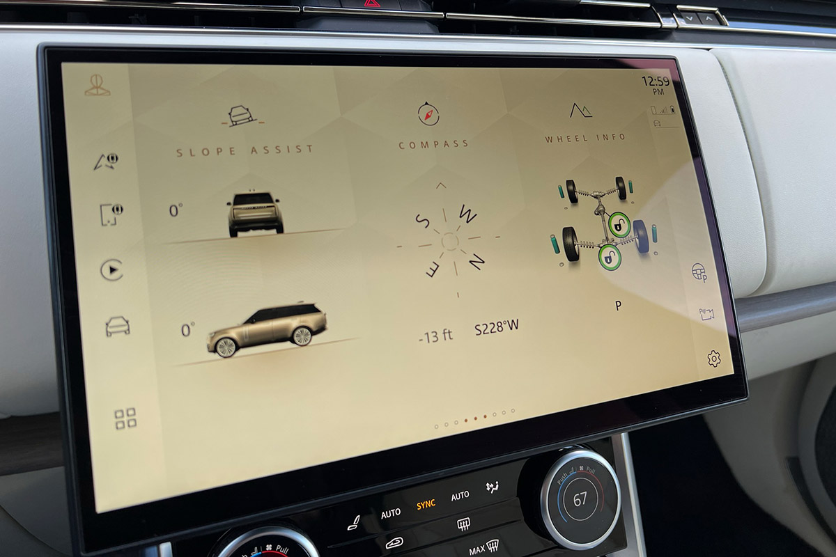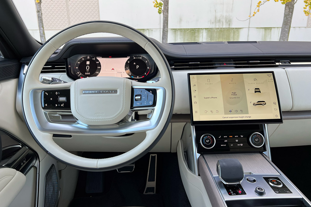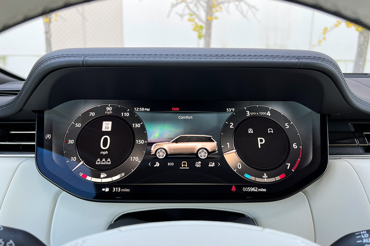 The First Edition trim dials things up even further, with unique badging, exclusive color choices (like our tester’s Sunset Gold Satin finish), and beautifully machined 23-inch wheels that fill the arches just right. Its sheer size and presence command respect in a way few SUVs can. Whether parked in front of a high-end restaurant or rolling through traffic, the Range Rover exudes an understated kind of power, the kind that doesn’t need to shout to be heard.