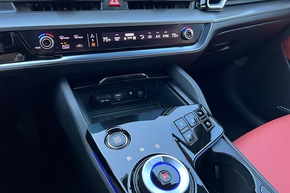 Step inside and the transformation continues. The cabin is very modern, premium-feeling, and loaded with thoughtful touches. Kia’s dual 12.3-inch displays dominate the dash. There’s one for the digital gauge cluster and one for the infotainment system, creating a seamless, high-tech look that wouldn’t feel out of place in a luxury vehicle. This is a Kia?!