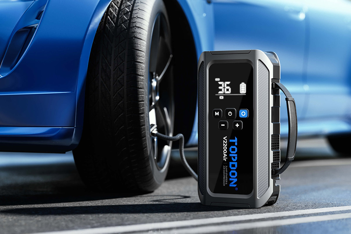 Stay prepared for any situation and drive with confidence with the TOPDON V2200Air 2-in-1 jump starter & tire inflator. This cordless device is the ultimate all-in-one solution for any car owner’s emergency needs, allowing you to jump-start your car, inflate your tires, charge your devices, and illuminate your surroundings with ease.