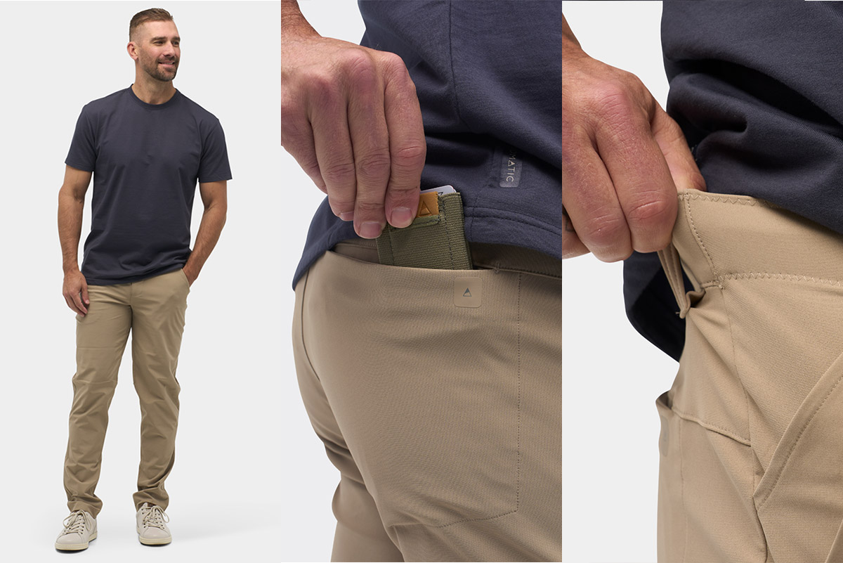 NOMATIC really thought of everything, including features like a stretch waist for “flexibility”, a dedicated phone pocket, and even a hidden zippered pocket that’s perfect for carrying your passport or valuables without fear of pick pocketers. Whether he’s navigating airport terminals or enjoying a weekend brunch, the NOMATIC Outset Pant ensures he does so with comfort, style and ease. ($91)