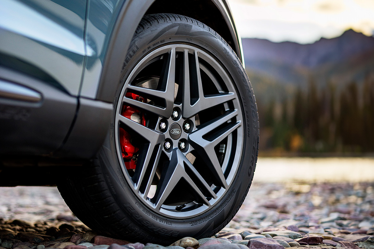 The new Explorer features seven wheel options, including 18-inch Sparkle Silver-painted aluminum (standard on Active), 20-inch Carbonized Gray-painted aluminum (available on Active), 20-inch Ebony machined, painted aluminum (standard on ST-Line), 21-inch Magnetite-painted aluminum (standard on ST, available on ST-Line), 20-inch Luster Nickel-painted aluminum (standard on Platinum, available on Active), 20-inch polished aluminum (available on Platinum), and 21-inch dark alloy polished aluminum (available on Platinum).