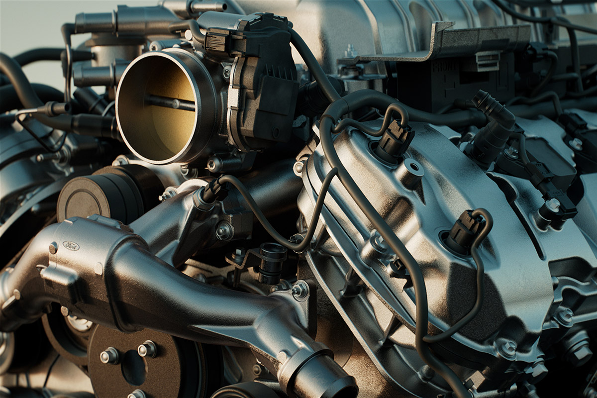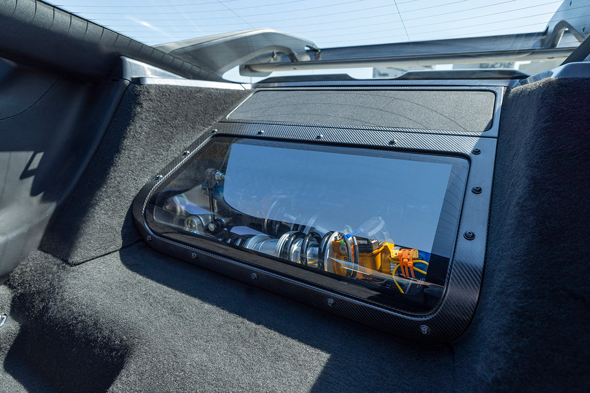 Delivering even more power than the latest Mustang Shelby GT500, the Mustang GTD takes that same supercharged 5.2-liter V8 engine and adds a dry-sump oil system that not only helps keep the engine lubricated through sustained and demanding cornering on-track, but also enables a slightly elevated maximum engine speed of 7,650 rpm (up 100 rpm). Revised intake and exhaust, a standard titanium exhaust, and a smaller supercharger pulley help achieve these impressive performance numbers.