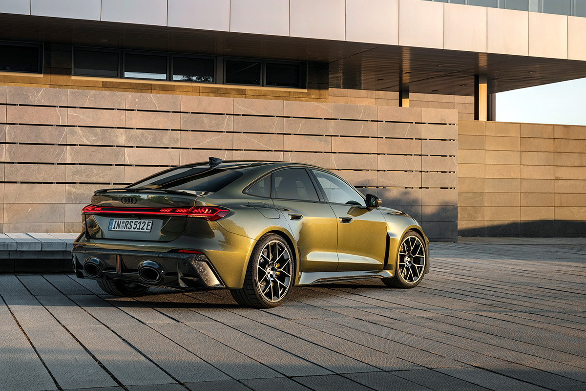 Out back, there’s a sculpted diffuser with vertical fins, a central red motorsport-nod reflector, and the RS sport exhaust system’s matte oval tailpipes sitting center stage. The exhaust valves can open to any position, tuning the sound to match your selected drive mode.
