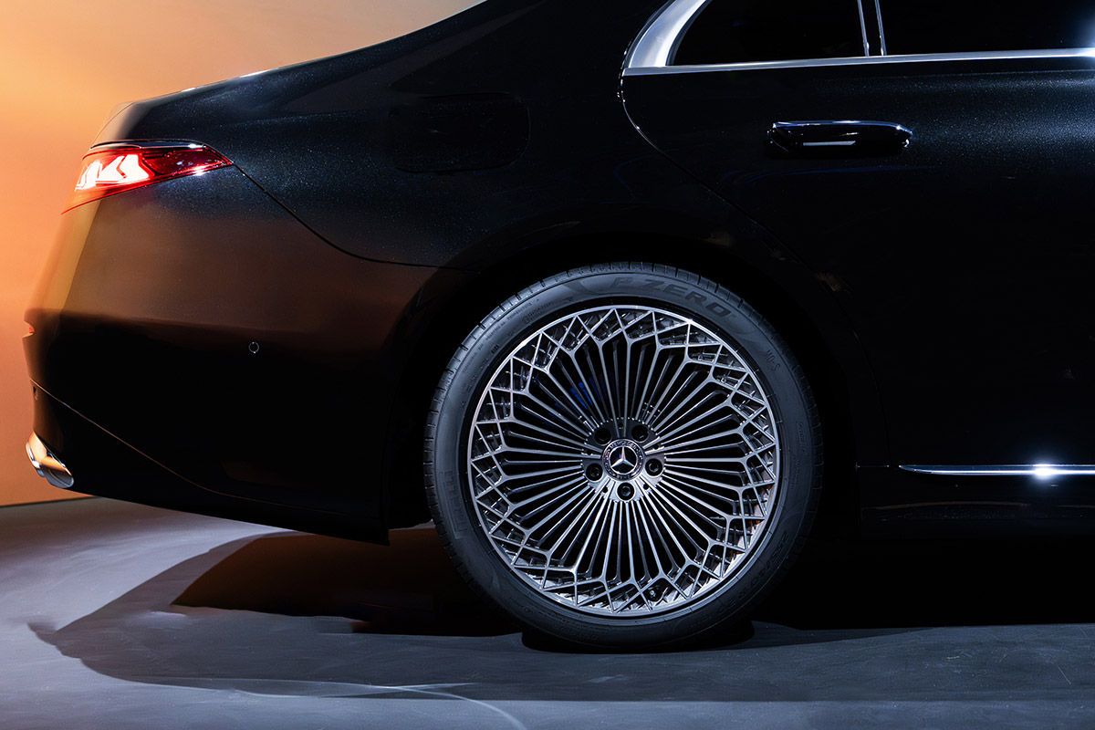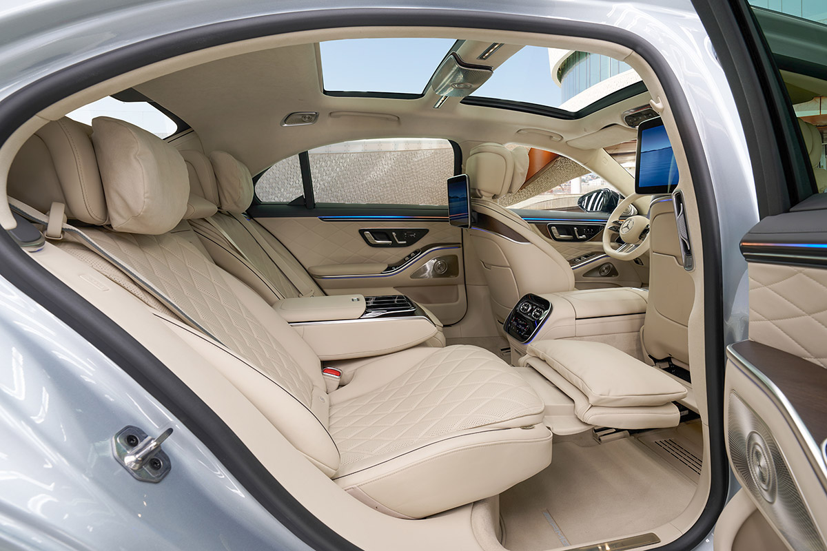 New taillights with three chrome-framed stars complete the signature look, while side sill projectors display “Mercedes-Benz” branding when you approach the vehicle.