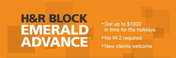 If so, you should check out the H&R Block Emerald Advance service. Emerald Advance can get you up to $1000 without having to jump through lots of hoops. People can apply today and receive their cash advance in time for the holidays.