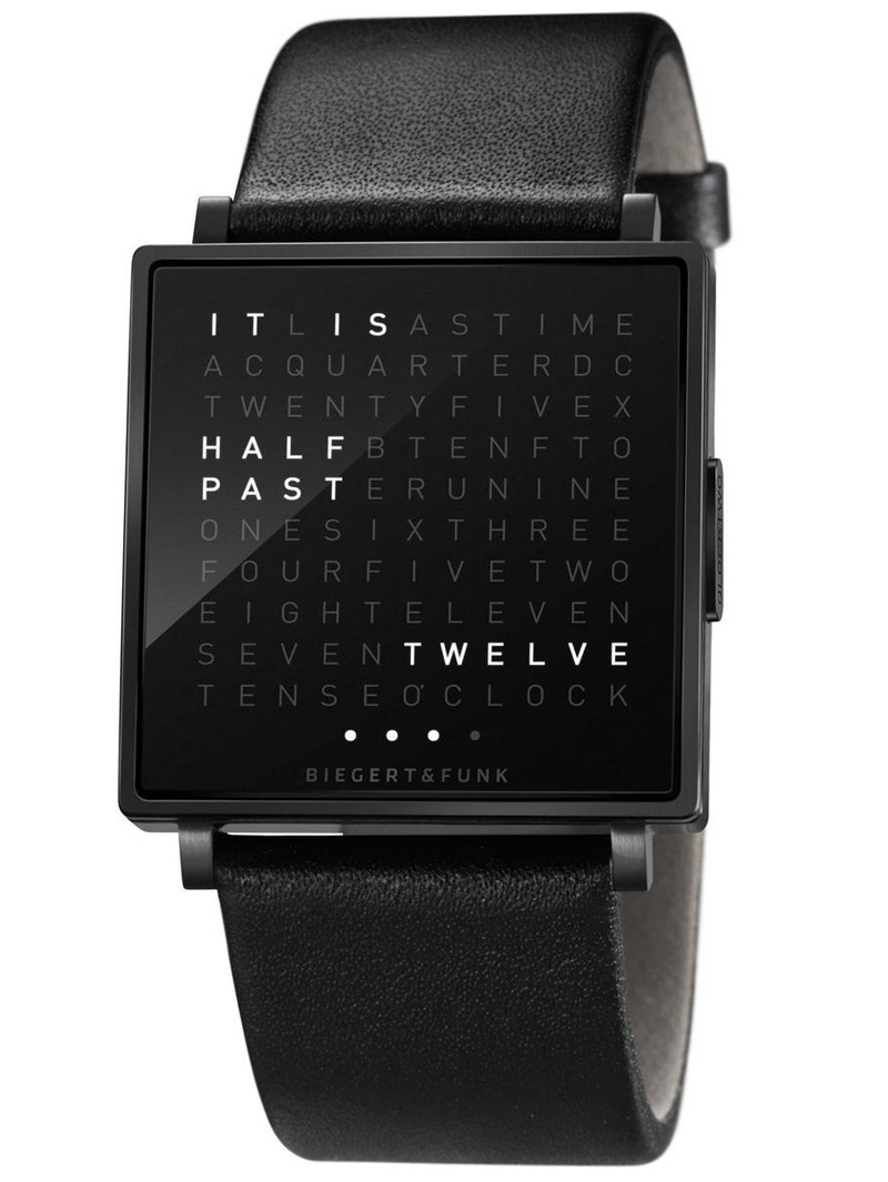The Biegert & Funk QLOCKTWO is a completely new kind of wristwatch, one that doesn’t show the time with hands or digits. Instead, time is indicated on this watch as readable text as shown above. The square watch face has a uniform grid of 110 letters. When the button is pressed, words light up in unexpected places which describe the time. This watch is way cooler than the Apple Watch, don’t you think?