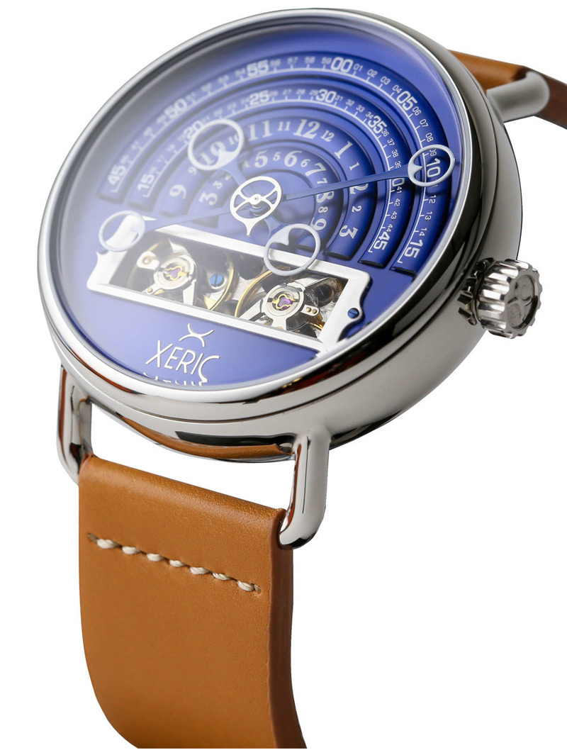 The Xeric HALOGRAPH Automatic features “halo” hands that display the time in an entirely new way. As the Halo Hands float over the four, dimensional, hemicycle time display arcs, they encircling the numbers for the time. The inner arcs display the hours, the outer arcs displays the minutes. This timepiece is sure to summon compliments and spark conversation everywhere you go!