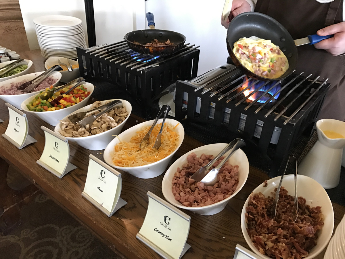 While we could have stayed here for hours, we had Sunday Brunch reservations at The Circular at noon, so we headed back to get changed before brunch. My wife told me that the food here was pretty legendary (and expensive, at $42.50/person), but nothing quite prepared me for this. “OMG, LOOK AT ALL THE FOOD!”