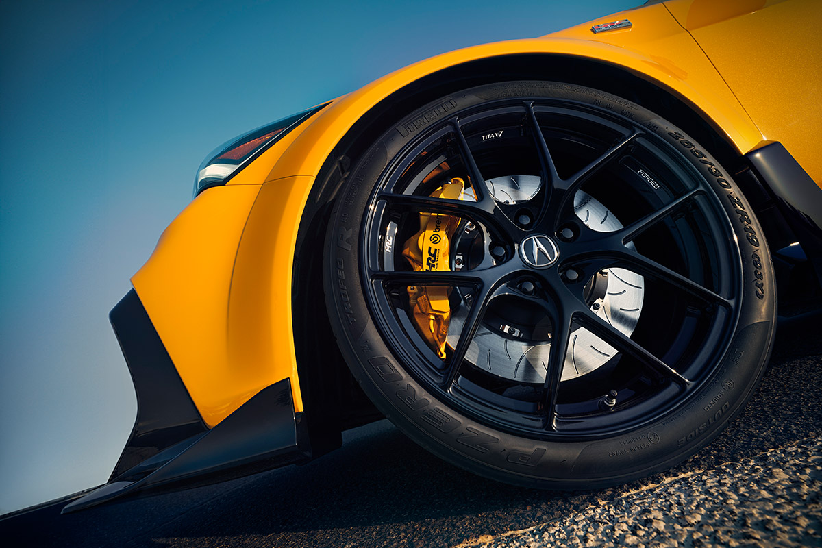 To maximize grip, the performance wheels are wrapped in track-ready Pirelli P Zero Trofeo R ultra high-performance tires (265/30ZR19) with a 60 Treadwear rating.