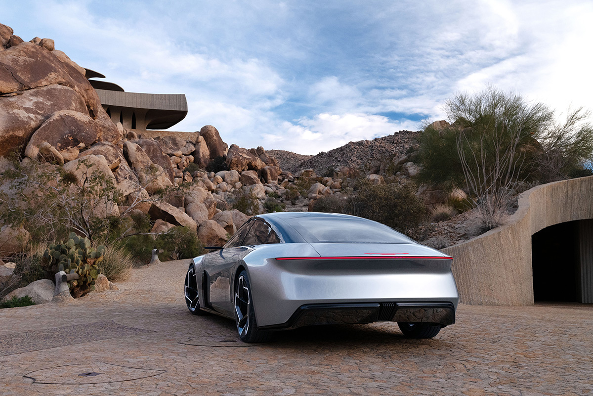 The concept’s Active Aero Technology incorporates a sliding rear lower aero diffuser created from lightweight composite material, a rear spoiler and air suspension to enhance efficiency and driving dynamics. The concept’s undercarriage is designed to incorporate emerging inductive charging technology, with sensors integrated in the vehicle communicating with sensors under the road to charge the battery and provide unlimited range.