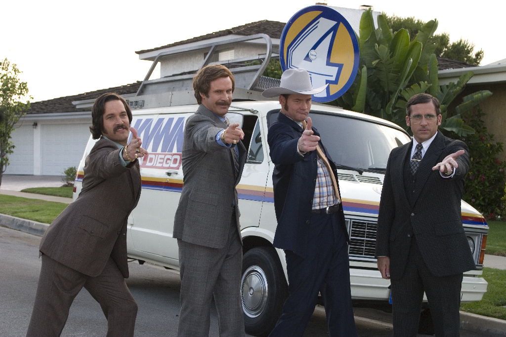 Set in the 1970s, Anchorman: The Legend Of Ron Burgundy tells the hard-hitting ridiculously funny story of a testosterone-filled newsroom threatened by the arrival of an ambitious female anchor. It was a time before cable when the local anchorman reigned supreme, and in the hard-hitting world of local TV news, Ron Burgundy (Will Ferrell) and his loyal Channel 3 News Team (Paul Rudd, Steve Carell, David Koechner) are San Diego’s #1 rated news source.