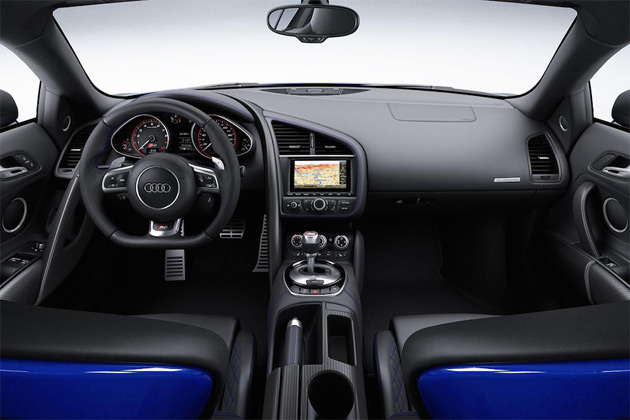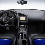 The Audi R8 LMX is being touted as “the world’s first production car with laser high beams.” The advanced Laserlight system kicks in automatically at speeds of 37 mph and above, with dual laser modules creating a cone of white light with twice the range of the all‑LED headlights. They emit white light at a color temperature of 5,500 Kelvin, thus enhancing the overall visibility and safety of the driver. And other drivers need not worry, as the LMX uses four high-powered diodes and a camera-based system of sensors to detect other vehicles on the road and adjust the light appropriately.