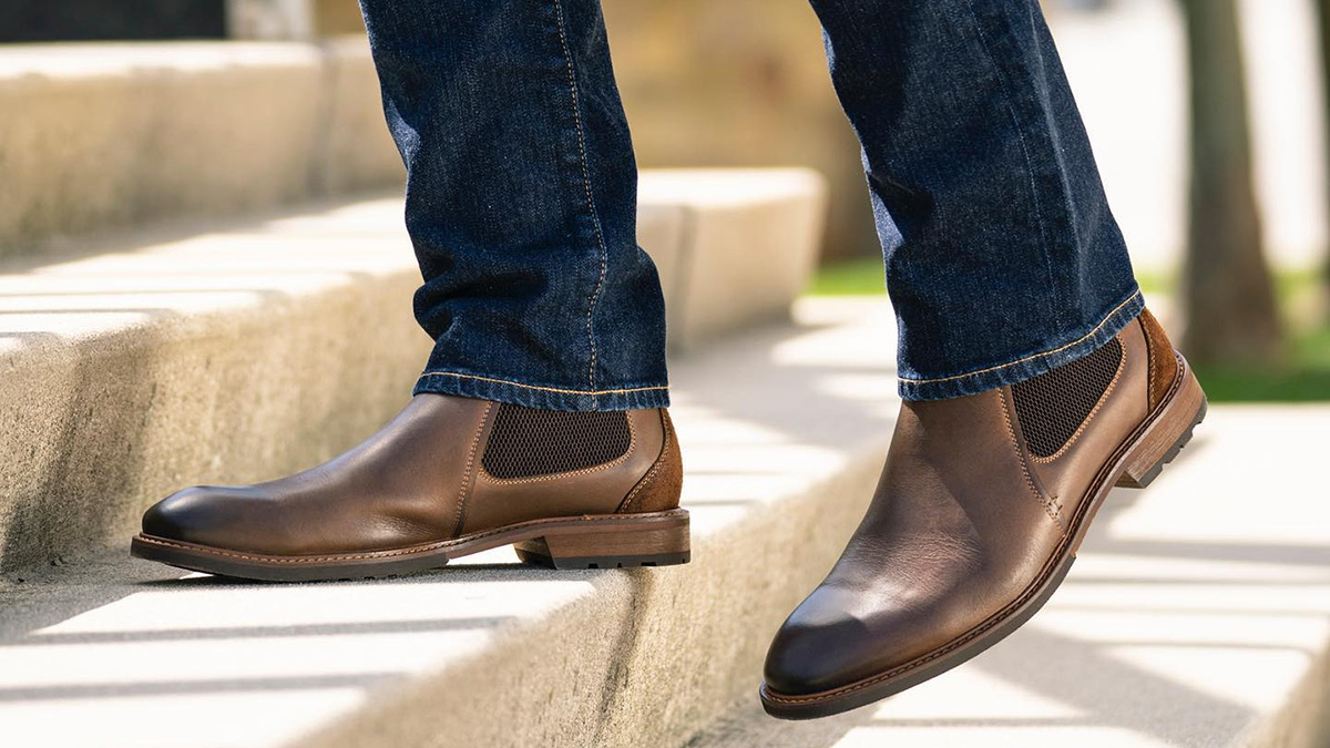 The Florsheim Lodge Plain Toe Gore Boot (available in brown, black or cognac) combines modern materials and comfort technology with a classic Chelsea boot design. This versatile boot features the convenience of being slip-on, along with the comfort of a fully cushioned Ortholite footbed providing you with all-day comfort and support. With its rich leather upper, sleek silhouette, and modern stacked heel, this boot is definitely sure to please. ($125)