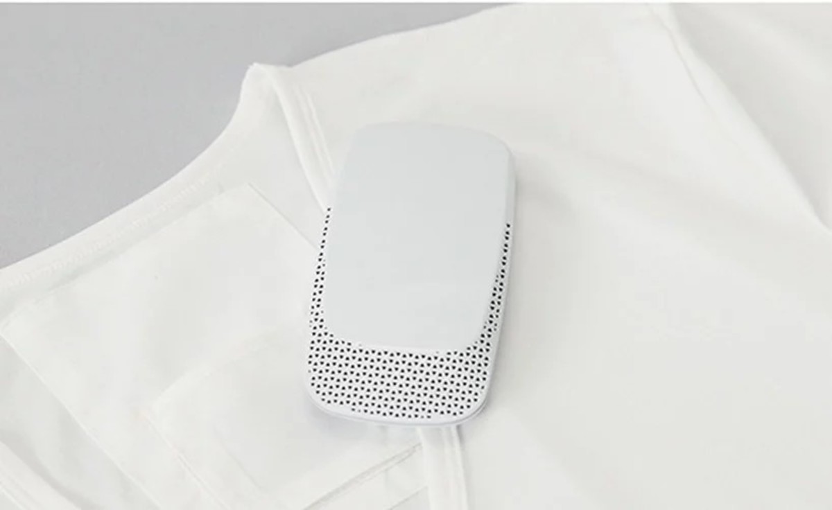 The Sony Reon Pocket utilizes thermoelectric cooling and heating to give you relief from the steaming hot summers as well as cold winters. As you can see from these photos, you simply place the small device into a special undershirt with a pocket at the base of the neck, and then control the temperature via an app.