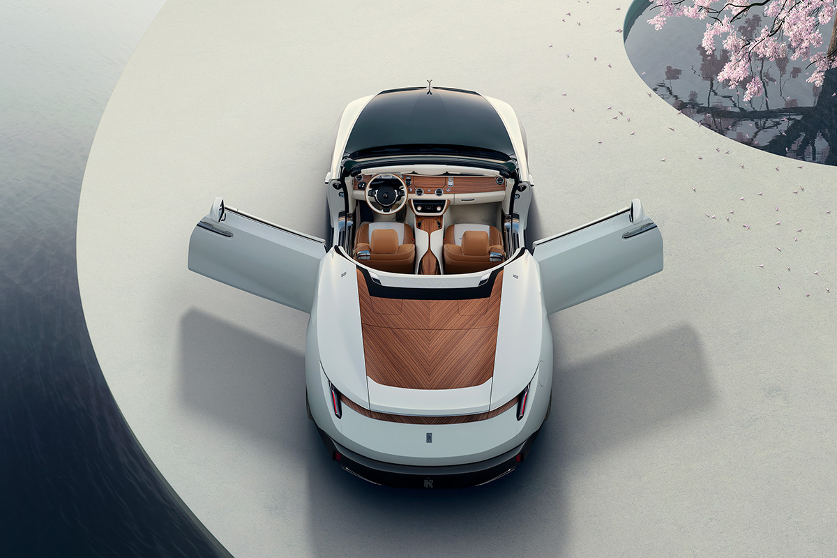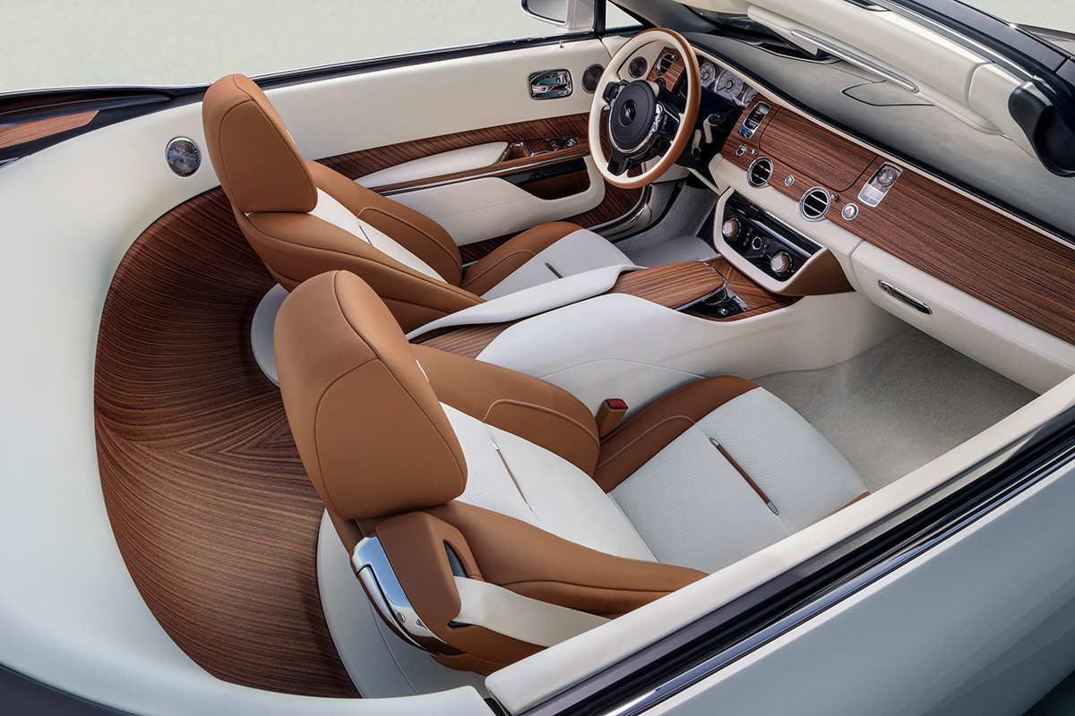 As the exterior of Rolls-Royce Arcadia Droptail celebrates the motor car’s form, the interior is a deeply personal reflection of the client’s individual aesthetic, reflective of the style they have curated in their residences and business spaces around the world. Arcadia Droptail’s color palette and material treatment was envisioned to be a truly personal statement and instantly recognisable as a personal signature of the commissioning client.