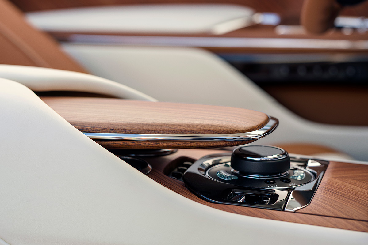 Applying wood to the complex curvatures of Droptail’s interior required Rolls-Royce engineers to develop an entirely new substructure for several components. The dramatic geometry of the dashboard, door linings and central cantilevered ‘plinth’ armrest had to be incredibly rigid to ensure the stability of the wood pieces once they were laid in place. Engineers called on carbon fibre layering techniques used in Formula 1 motor racing to develop an incredibly stiff base onto which the wood could be applied, ensuring that it remained secure regardless of the dynamic extremes the motor car experienced.