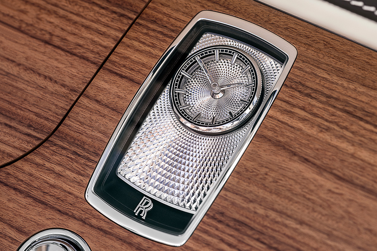 The clock incorporates an exquisite geometric guilloché pattern in raw metal with 119 facets. This is a symbolic nod to the marque’s heritage; as the client first saw a preview of the motor car in late 2023 – the year when Rolls-Royce celebrated its 119-year anniversary. The specially designed clock face also includes partly polished, partly brushed hands and 12 ‘chaplets’ – or hour markers – each just 0.1mm thick. To ensure the readability of the timepiece, specialists gave each chaplet an infill bridge and painted them by hand using a camera capable of magnifying an image by up to 100x.