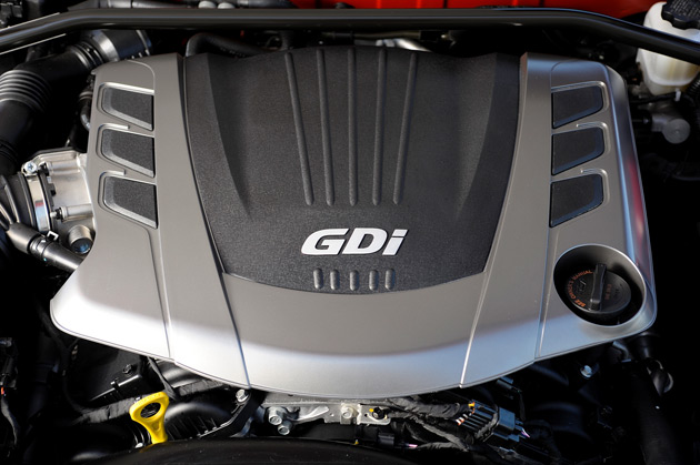 The 2013 model year sees some improvements to the Genesis Coupe, including a styling refresh that brings a lot more pop for the buck. Most of the improvements are underneath the hood, with the vastly improved 3.8-liter V-6 now getting more horses out of the same block. This was achieved by high-pressure fuel injection spraying directly into the combustion chamber, which increases compression to 11.5:1 without raising operating temperatures thanks to the direct cooling effect of the fuel itself before ignition.