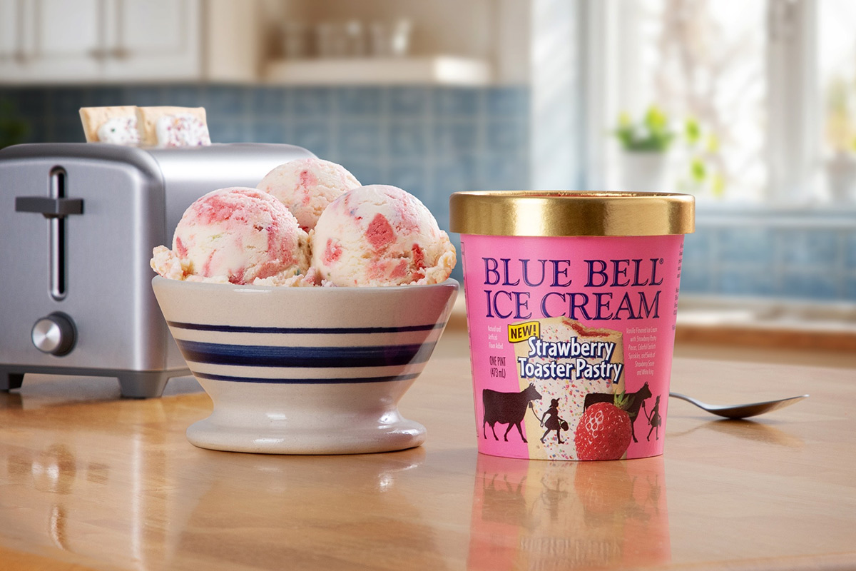 “Our new Strawberry Toaster Pasty will wake up your taste buds. We have combined so many delicious flavors in a pint-sized carton. The smooth vanilla ice cream and strawberry sauce complement the pastry pieces perfectly. The confetti pieces and icing swirl add a subtle sweetness to every bite,” said Joe Robertson, executive director of advertising and marketing for Blue Bell.
