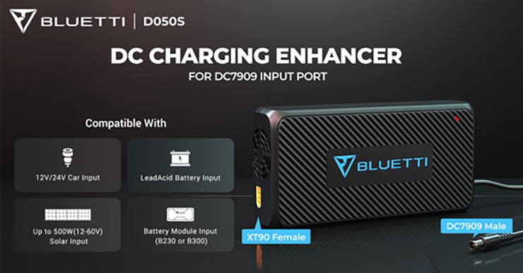 The BLUETTI DC Charging Enhancer might be small in size, but it’s a mighty game-changing component. This enhancement tool for the DC inlets (the DC7909 port for adapter) on units has a built-in MPPT charge controller with voltage regulator circuits, allowing this little magic box to juice up your current BLUETTI products in a variety of additional charging ways.