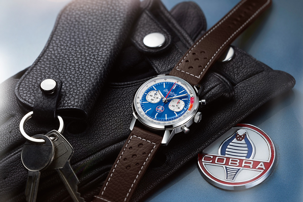 From the start, the Top Time was all about action, and it became a fast favorite among motor enthusiasts and the fashion set. One of the first chronographs that was equally sought after by both men and women, its bold, graphic designs took over magazines and the silver screen (the world’s favorite spy, James Bond, even wore an iteration in the 1965 movie Thunderball). That spirited tradition continues today with Breitling partnering with some of the coolest names in wheels to create its Top Time designs – brands like Deus Ex Machina and Triumph Motorcycles for bikes, Ford Thunderbird and Mustang, Chevrolet Corvette, and Shelby Cobra for cars.