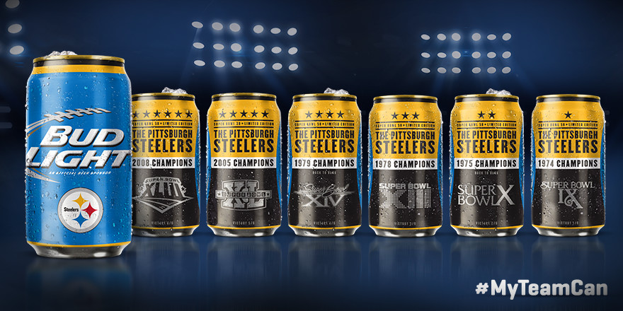 Bud Light released 28 NFL team specific Bud Light cans at the start of the NFL season, and by all accounts it’s been a great success. So in celebration of Super Bowl 50, Bud Light is debuting 40 new NFL Bud Light can designs that highlight previous Super Bowl winners. This marks the first time that Bud Light will be customizing team cans for the Super Bowl.