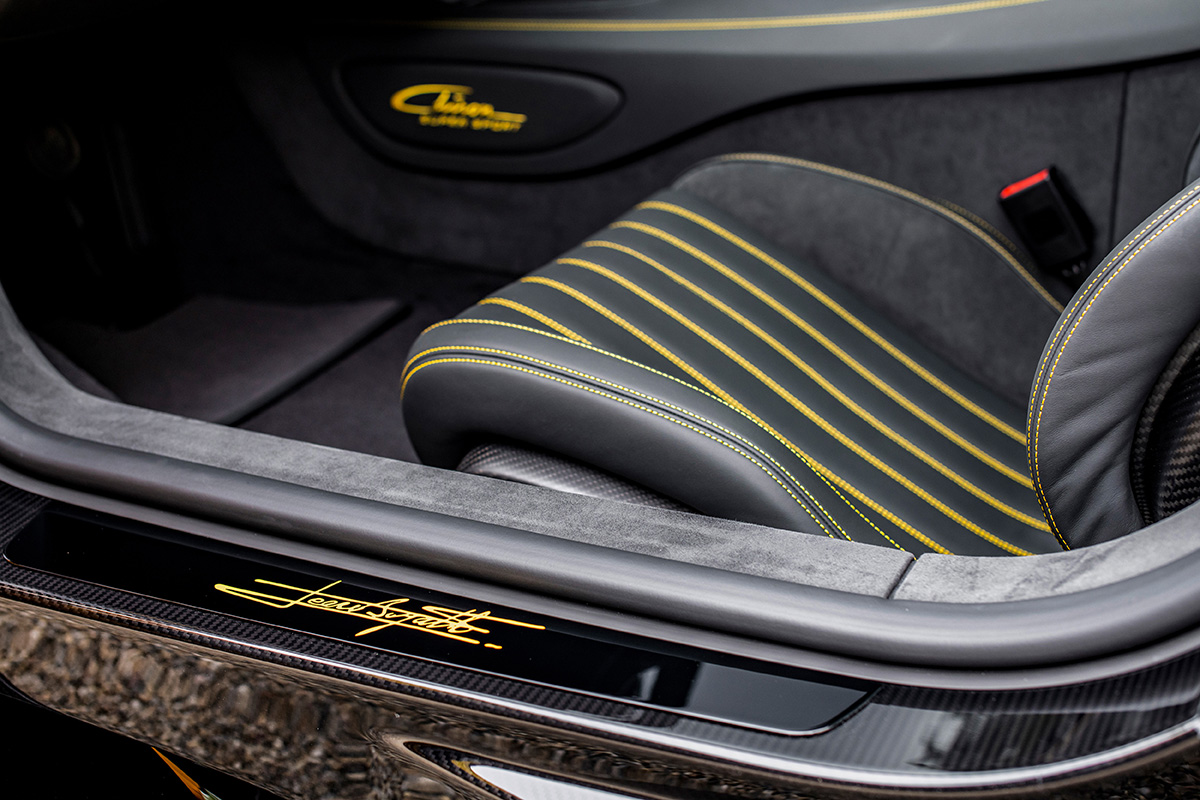 In further recognition of Jean Bugatti’s visionary contributions, his signature is prominently placed on the door sill and the car’s dedication plate. Together, these interior details not only underscore the aesthetic allure of this Chiron Super Sport but also create a deep connection between the driver and the storied heritage of the Bugatti brand.