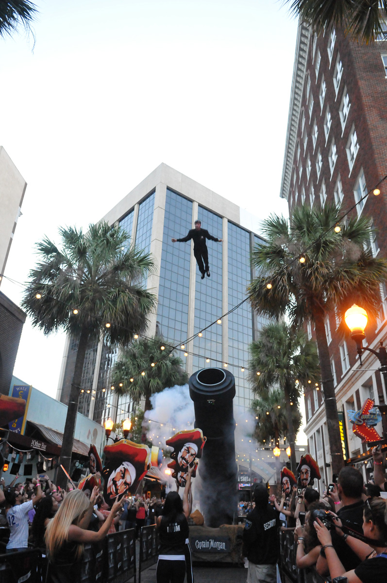 To welcome the newest addition to the Captain Morgan line up, the brand hosted its first-ever Cannon Blast Bar Crawl. This adventurous spectacle took over the Wall Street Plaza in Downtown Orlando, where human cannonball Brian Miser, for the first time ever, performed multiple blasts between various bars from different cannons on the same day.
