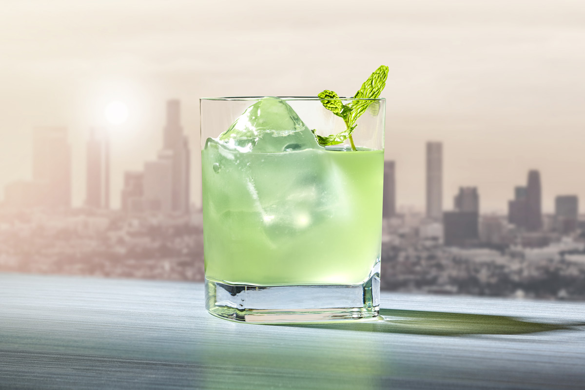 Method: Shake all ingredients vigorously with plenty of ice, double strain into a rocks glass with a large ice cube. Garnish with a mint sprig.
