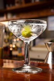 Fill a mixer with all ingredients including the olives. Cover and shake hard 3 – 4 times. Strain contents of the mixer into the cocktail glass. Garnish with an olive.