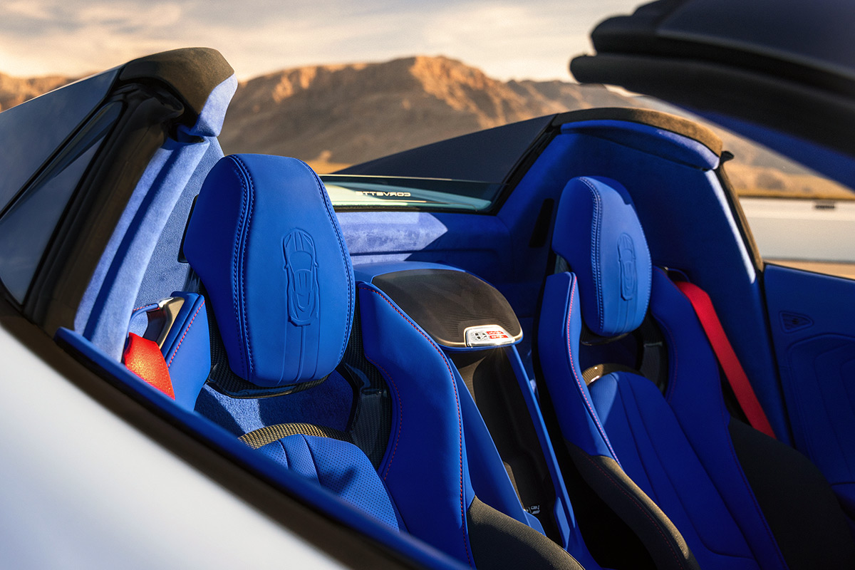 The color palette reaches into the archives by reviving Admiral Blue Metallic, a signature hue from the C4 era – enabling the iconic blue body, white center stripe and red hash Grand Sport appearance.