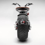 The bike sits on a custom suspension fork at the front and a custom coilover shock at the rear, both of which are adjustable. It features 18-inch BlackStone Tek carbon fiber wheels with a front width of 3.5 inches and a chunky rear width of 8 inches. Four-piston Aerotec calipers coupled with dual beringer Aeronal floating ductile iron rotors at the front and a cross-drilled Brembo stainless steel rotor at the rear help to keep a lid on things.