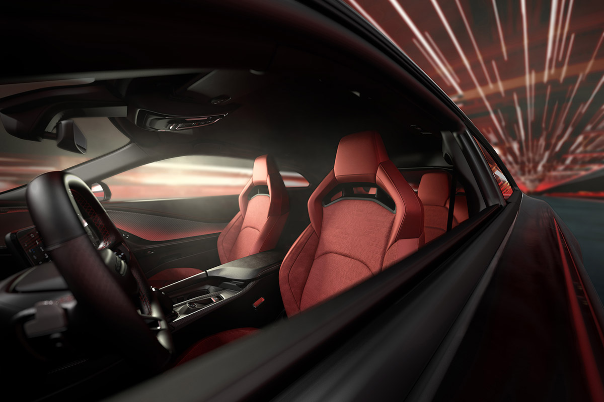 Interior upgrades include driver and passenger high-back fixed headrest performance seats trimmed in leather and suede, 12-way power with four-way lumbar adjustment and heated rear seats. Drivers can capture both performance driving and daily driving with the Drive eXperience Recorder, which features user options for drag race and circuit race recording, providing in-car synchronized logging of audio, video and vehicle data.