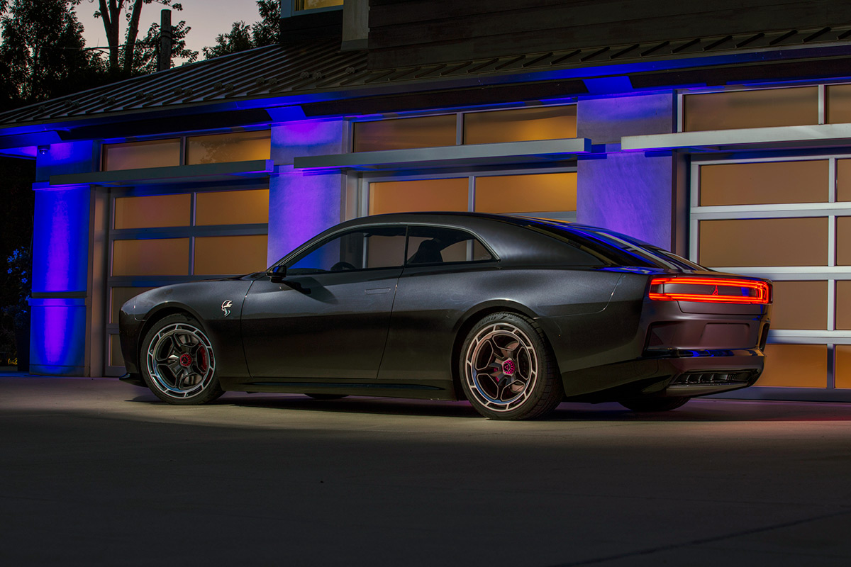The Dodge Charger Daytona SRT Concept features inspired design that takes on the challenge of revolutionizing the look of a BEV while offering subtle nods to the brand’s muscle car past.